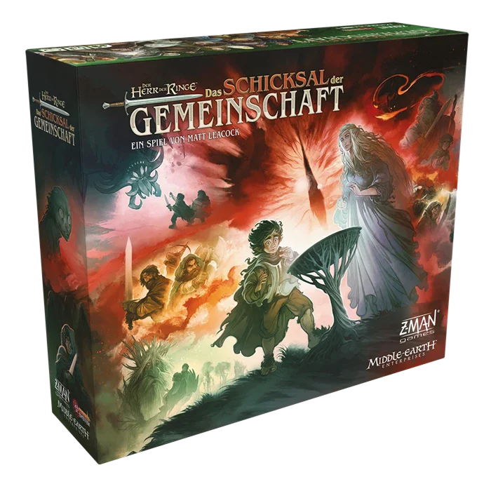 Der Herr der Ringe: Das Schicksal der Gemeinschaft ist ein kooperatives Spiel für 1–5 Personen, in dem jeder von euch 2 Charaktere aus Mittelerde verkörpert. Mit euren einzigartigen Fähigkeiten könnt ihr Frodo beschützen und an entscheidenden Orten Schlachten gegen eure Feinde austragen, immer auf der Hut vor den bedrohlichen Nazgûl und Saurons suchendem Auge. Dieses von Matt Leacock entwickelte Spiel bietet mit seinen 24 einzigartigen Zielen, 14 Ereignissen und 13 spielbaren Charaktere immer wieder neue Herausforderungen. Das Schicksal der Freien Völker hängt von eurem Heldenmut, eurer Freundschaft und eurer Entschlossenheit ab. Schafft ihr es, den Einen Ring ins Feuer zu werfen, oder wird sich sein Träger in den Schatten verlieren?